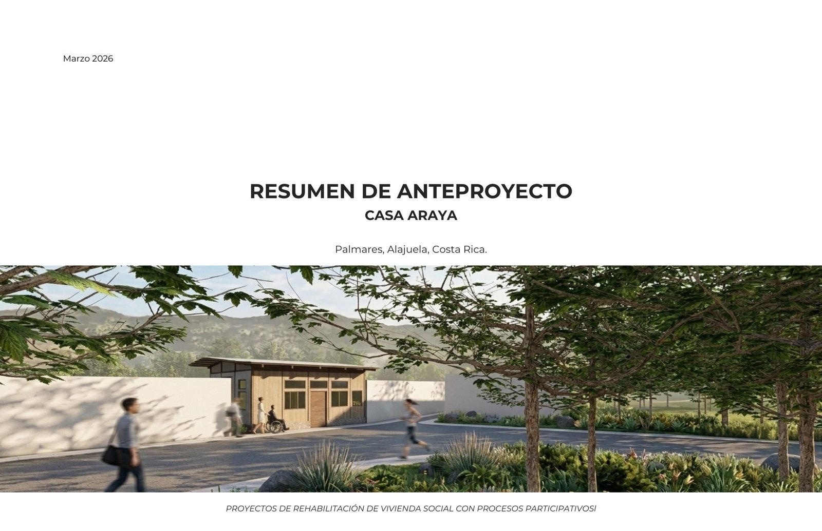 Casa Araya es un proyecto de rehabilitación de vivienda social que busca mejorar las condiciones habitacionales de la familia Araya —Doña Roxana y Byron— mediante un enfoque de diseño participativo, acción colectiva y colaboración interinstitucional.